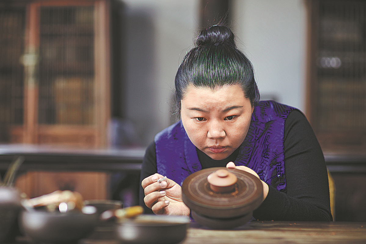 "Learning purple pottery has raised my monthly income from about 3,000 yuan ($475) to more than 10,000 yuan," Lyu said. "At the same time, I feel reborn and have found direction in life."