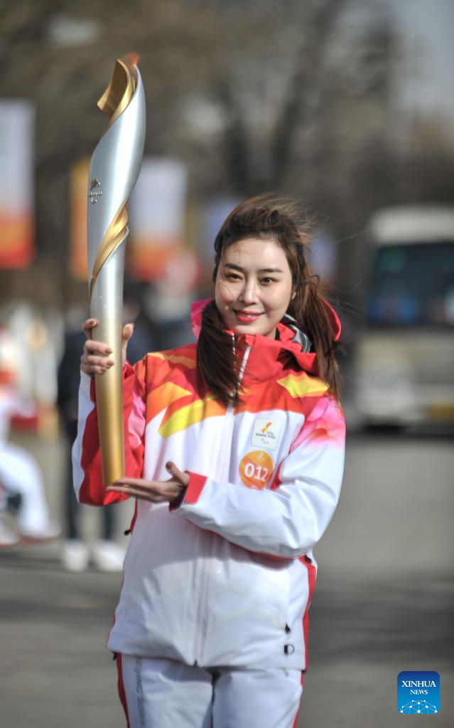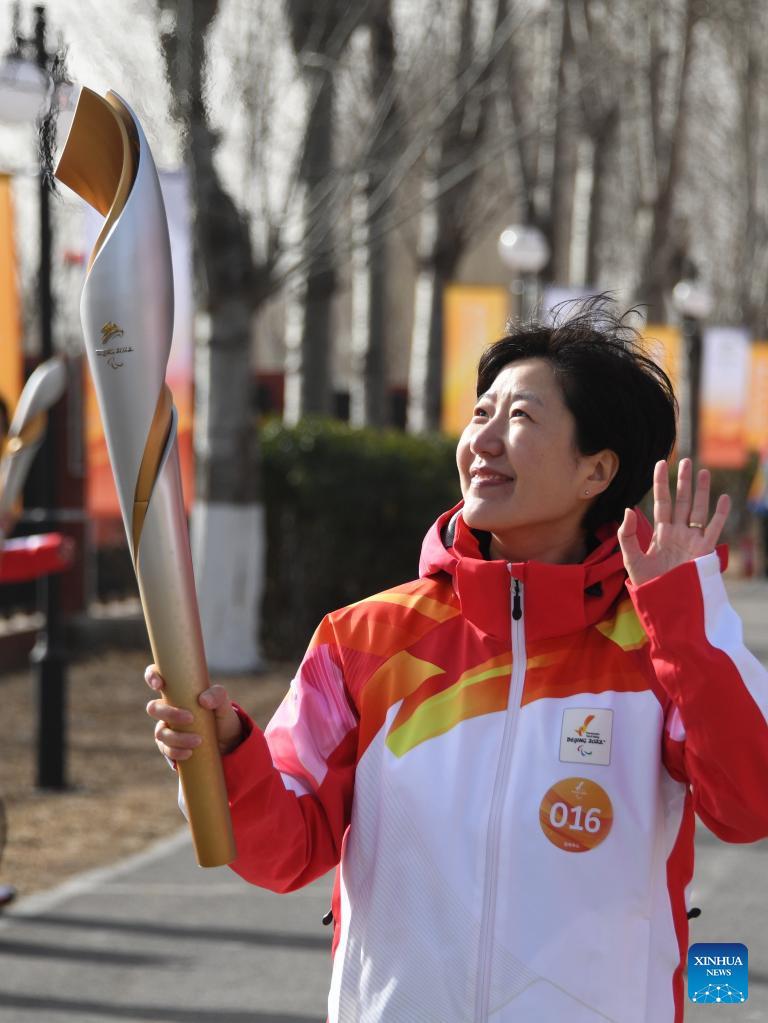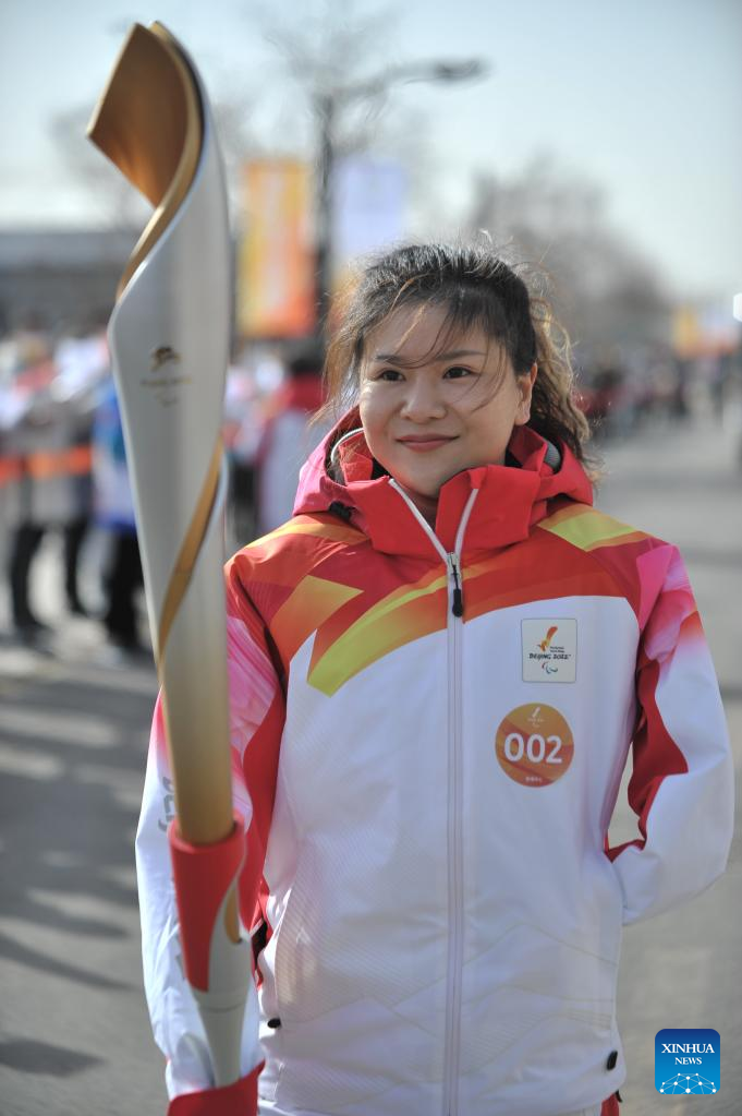 Torchbearer Zhang Bei attends the Beijing 2022 Paralymic Torch Relay in Beijing, capital of China, March 4, 2022. (Xinhua/Li Xin)