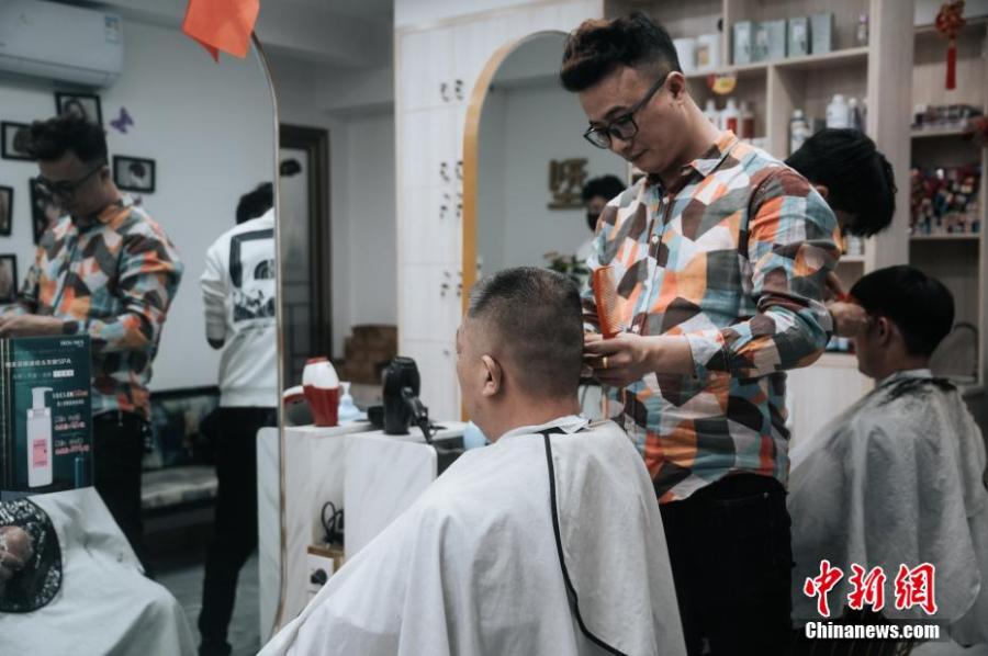 People have their hair cut to celebrate Longtaitou Festival in Fuzhou, Fujian Province, March 4, 2022. (Photo: China News Service/Li Nanxuan)