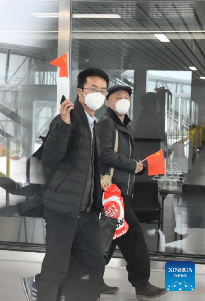 Chinese citizens evacuated from Ukraine arrive at Lanzhou Zhongchuan International Airport in Lanzhou, northwest China's Gansu Province, March 6, 2022. (Xinhua/Du Zheyu)