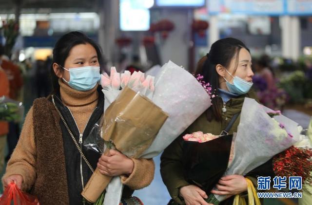 Local citizens buy fresh flowers at a flower market in Kunming, capital of Yunnan Province on Feb. 9, 2021. (Photo/Xinhua)