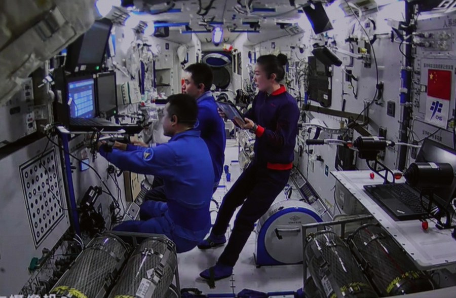 Wang and two other astronauts went into space onboard the Shenzhou-13 spaceship and entered the space station on Oct. 16, 2021, embarking on the six-month space mission.