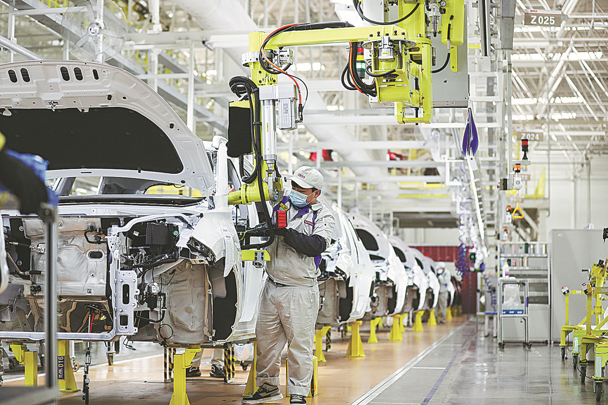 Vehicles are assembled at Cowin Auto's plant in Yibin, Sichuan province, for export to a total of 10 countries and regions. [Photo by Zhuang Geer/For China Daily]