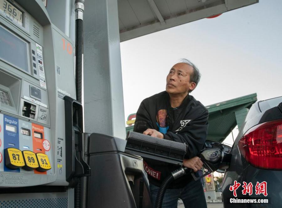 A man pumps gas at a gas station, San Mateo County, California, U.S., March 6, 2022.