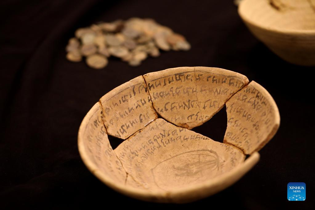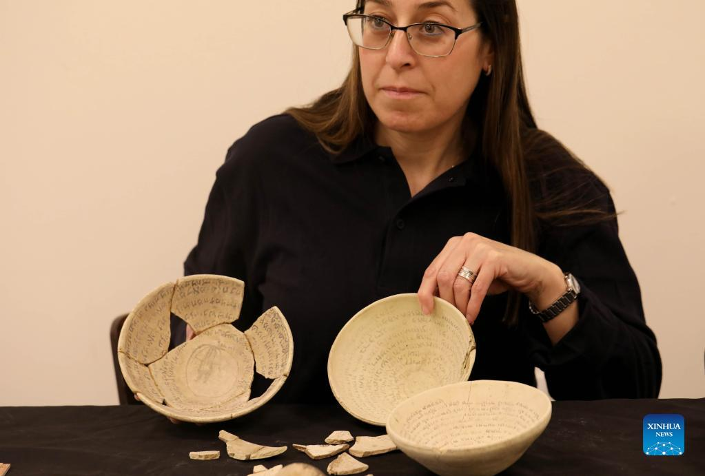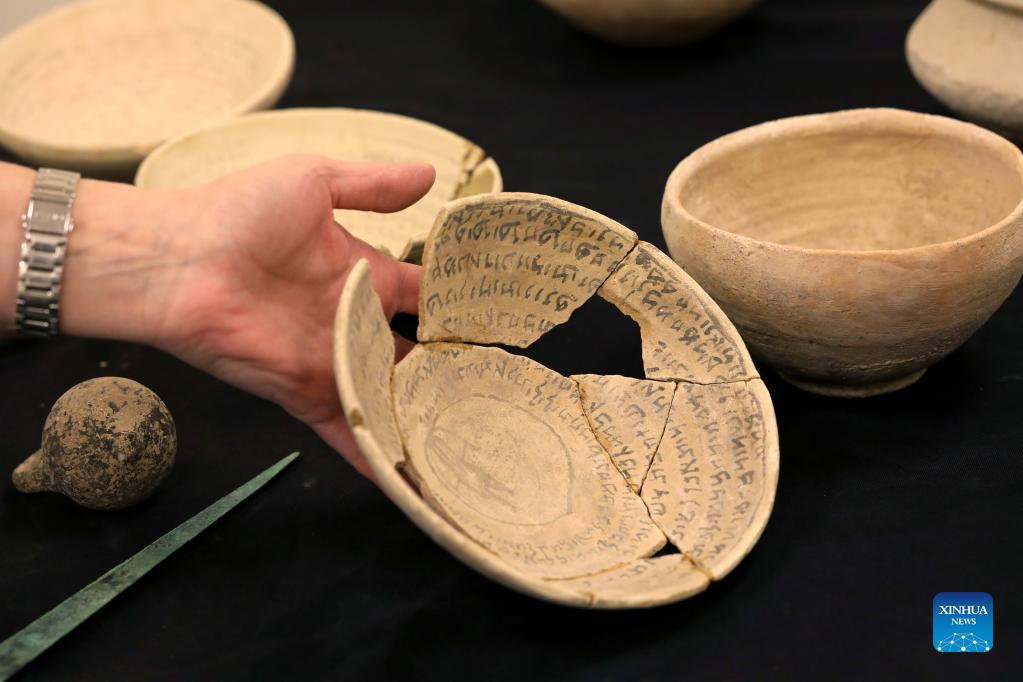 JERUSALEM, March 7 (Xinhua) -- Ancient magical bowls, carrying spells and incantations scripts in the Hebrew and Babylonian-Aramaic languages, were uncovered in Jerusalem, the Israel Antiquities Authority (IAA) said on Monday.