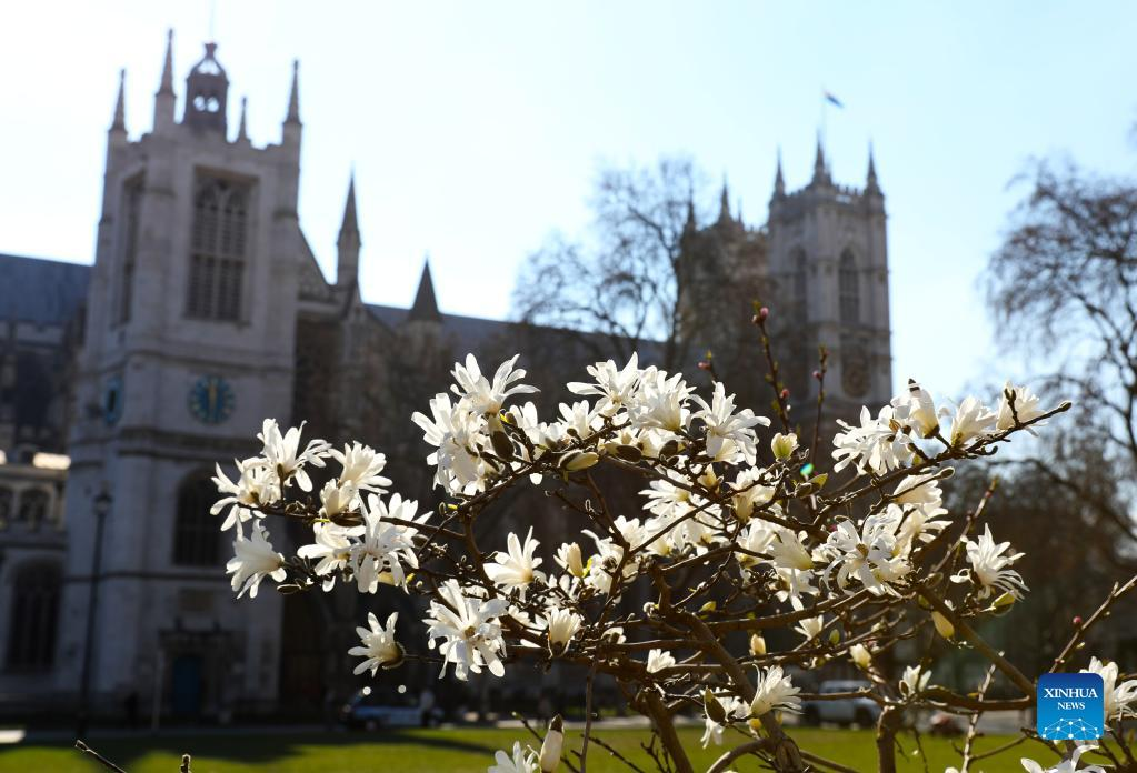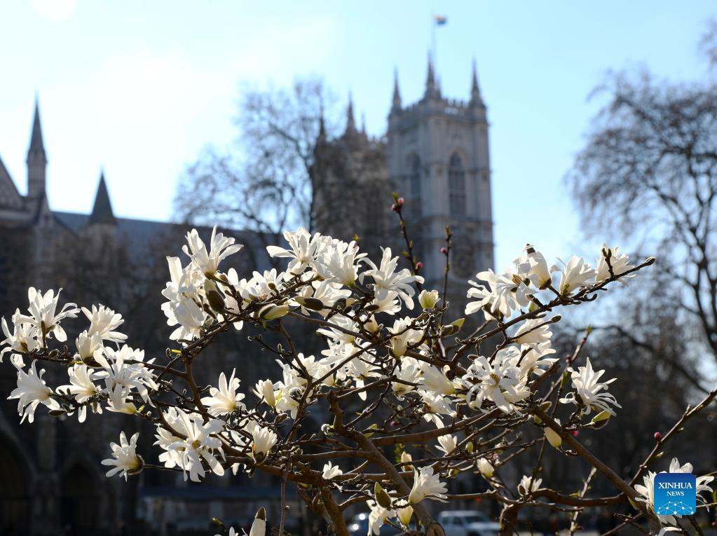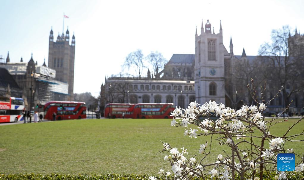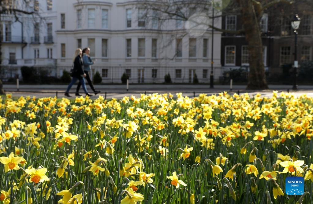 Flowers are seen at a park in central London, Britain, March 7, 2022. (Xinhua/Li Ying)