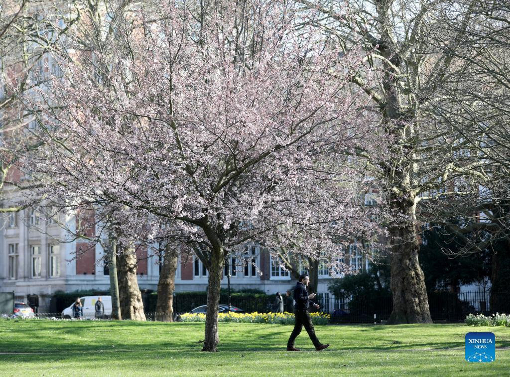 A man walks at a park in central London, Britain, March 7, 2022. (Xinhua/Li Ying)
