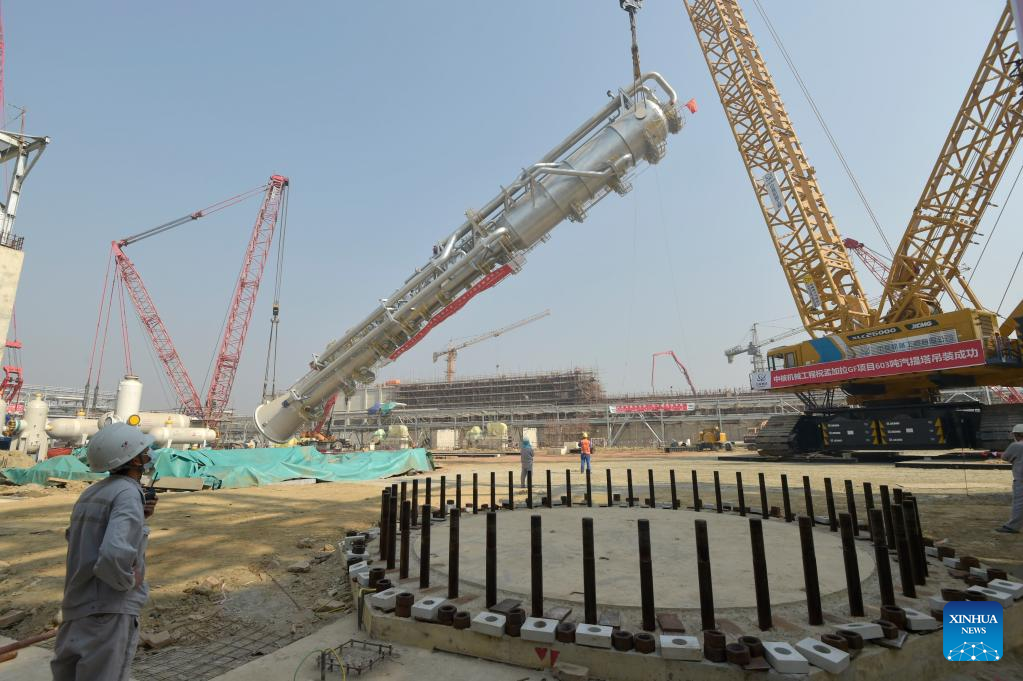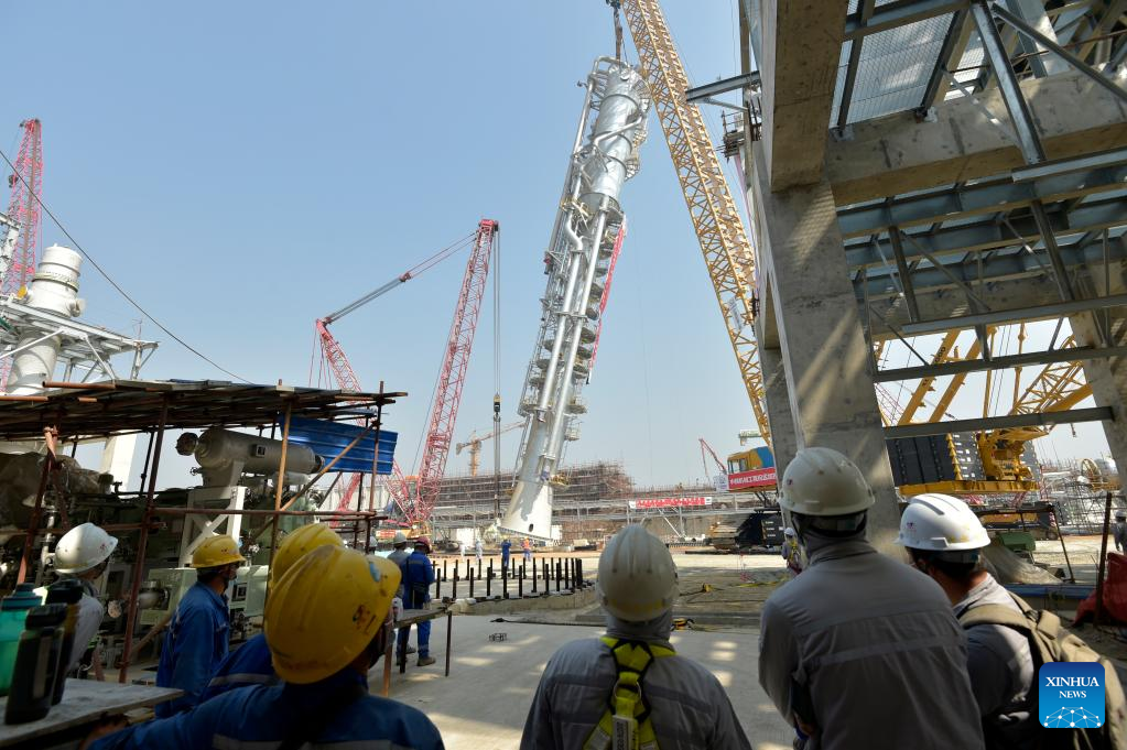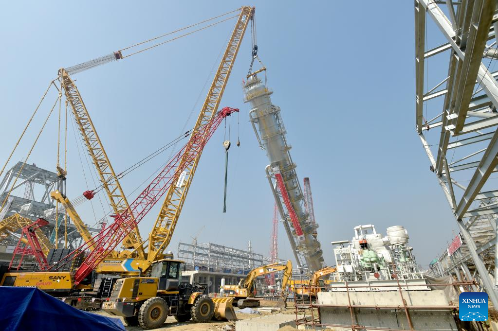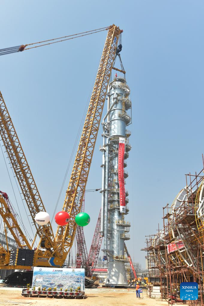 DHAKA, March 8 (Xinhua) -- The carbon dioxide stripping tower, the first super-heavy equipment of Bangladesh's Ghorashal-Polash Urea fertilizer project (GPUFP), the country's largest and first ever green fertilizer factory, was installed successfully on Tuesday.