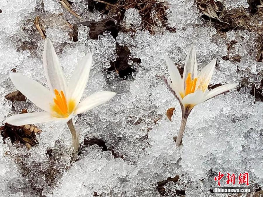 Wild lilies, also known as the top ice flowers, the first flower of spring in Xinjiang Uygur Autonomous Region, bloom in Qapqal county, Xinjiang. These flowers usually appear as the snow on the mountains thaws, and locals say they signal the end of winter. (Photo: China News Service/Hua Yanming)