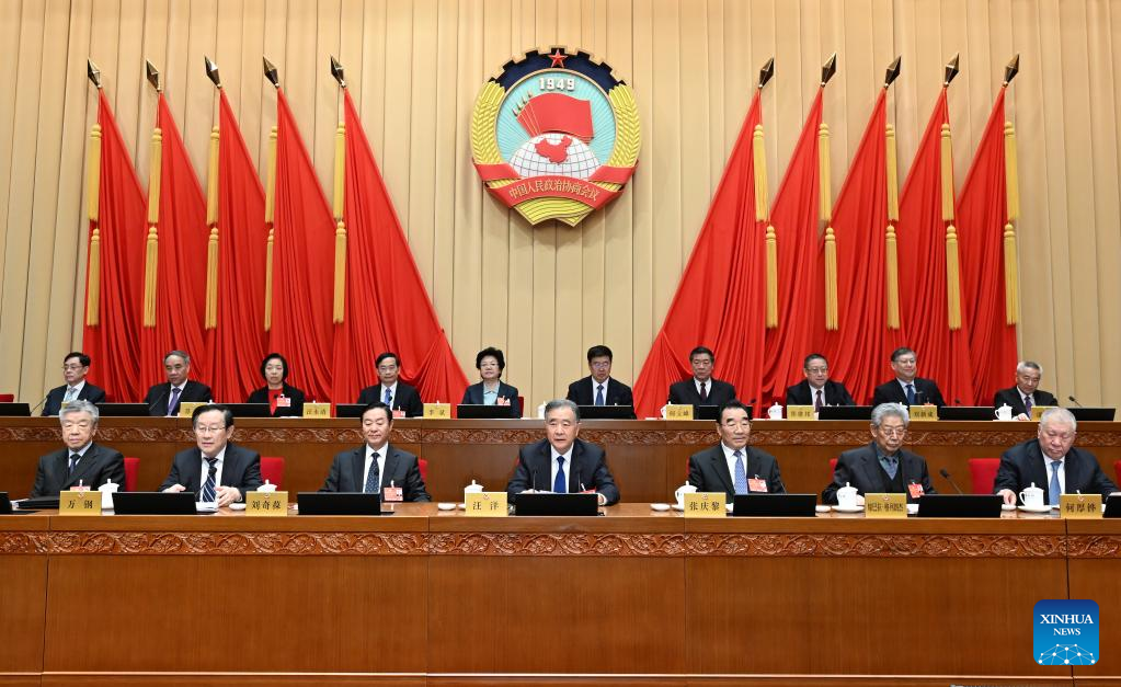Wang Yang, a member of the Standing Committee of the Political Bureau of the Communist Party of China Central Committee and chairman of the National Committee of the Chinese People's Political Consultative Conference (CPPCC), presides over the 21st session of the Standing Committee of the 13th CPPCC National Committee in Beijing, capital of China, March 9, 2022. (Xinhua/Zhang Ling)