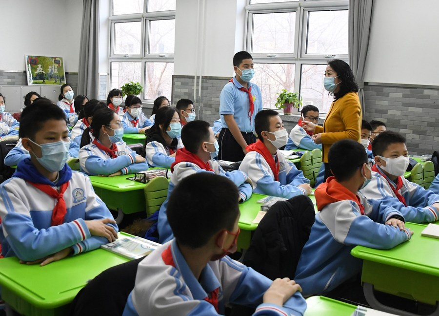 Students attend a class in the High School Affiliated to China Agricultural University in Beijing, capital of China, Feb. 21, 2022. (Xinhua/Ren Chao)