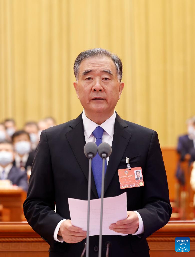 Wang Yang delivers a speech while presiding over the closing meeting of the fifth session of the 13th National Committee of the Chinese People's Political Consultative Conference (CPPCC) at the Great Hall of the People in Beijing, capital of China, March 10, 2022. (Xinhua/Huang Jingwen)