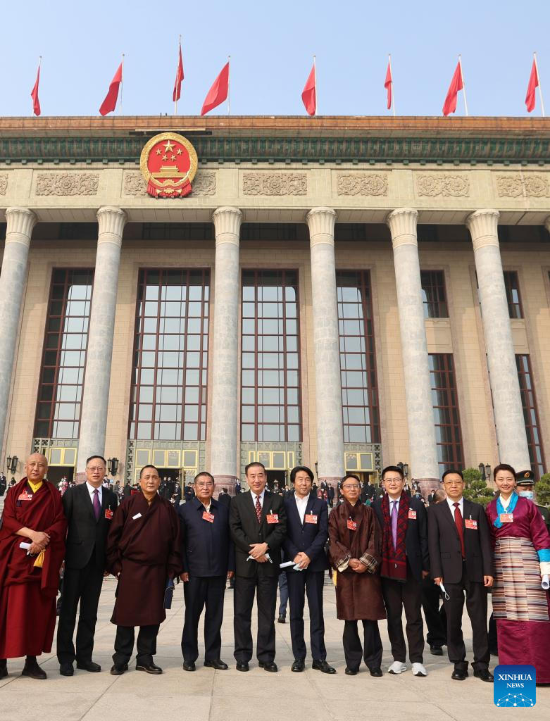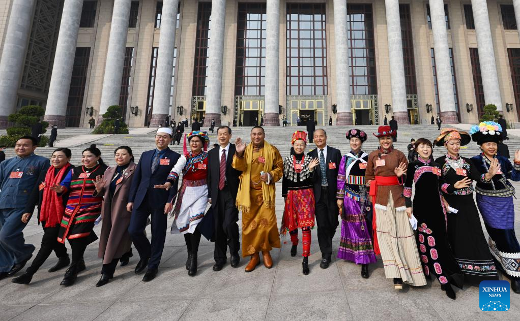 Members of the 13th National Committee of the Chinese People's Political Consultative Conference (CPPCC) pose for a group photo outside the Great Hall of the People after the closing meeting of the fifth session of the 13th CPPCC National Committee in Beijing, capital of China, March 10, 2022. (Xinhua/Xing Guangli)