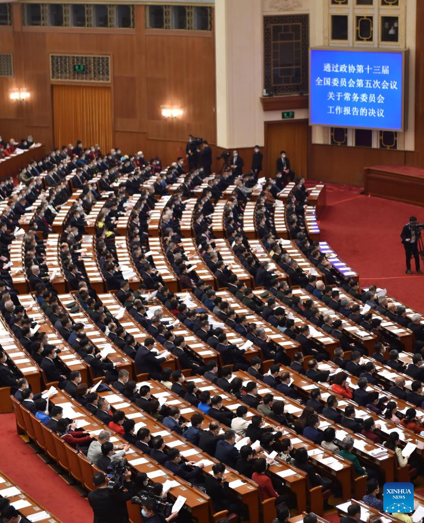BEIJING, March 10 (Xinhua) -- The fifth session of the 13th National Committee of the Chinese People's Political Consultative Conference, China's top political advisory body, started its closing meeting on Thursday morning.