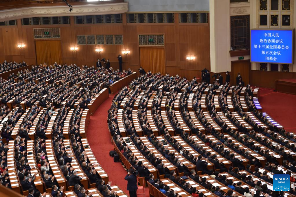 The closing meeting of the fifth session of the 13th National Committee of the Chinese People's Political Consultative Conference (CPPCC) is held at the Great Hall of the People in Beijing, capital of China, March 10, 2022. (Xinhua/Rao Aimin)