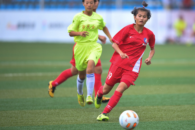 Wang Huimin, a member of the Qiongzhong Women’s Football Team in south China’s Hainan Province, competes in a match during the Gothia Cup in 2017. (Photo courtesy of the interviewee)