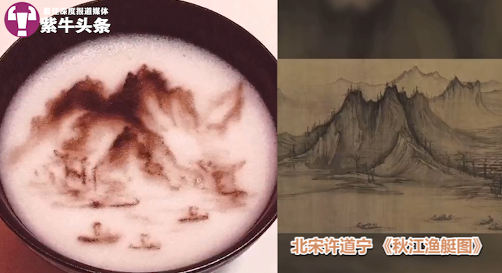 Over the past six years, Han has created nearly 200 images with tea foam by imitating masterpieces that date back to the Song Dynasty.