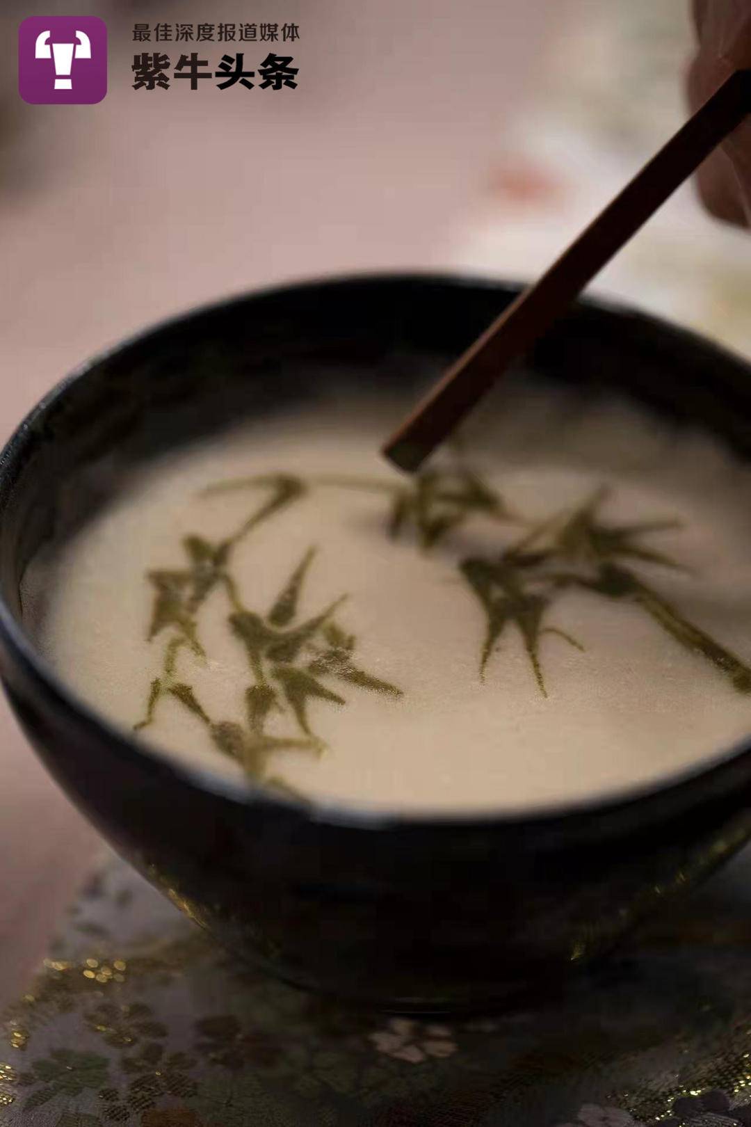 Han tried seven different types of tea powder until he finally decided on white tea as the raw material to create his whisked tea, with white tea being slightly sweet to the taste, and which is capable of producing a white and delicate foam upon being whisked, providing ideal conditions for forming the foam into pictures.