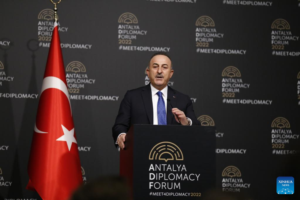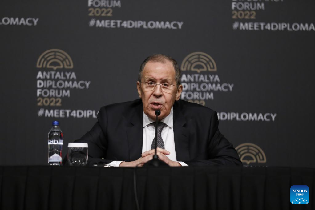 ANTALYA, Turkey, March 10 (Xinhua) -- Russian Foreign Minister Sergey Lavrov and his Ukrainian counterpart, Dmytro Kuleba, agreed on continuing negotiations over the conflict but failed to make progress in declaring a ceasefire during their meeting in Turkey on Thursday.