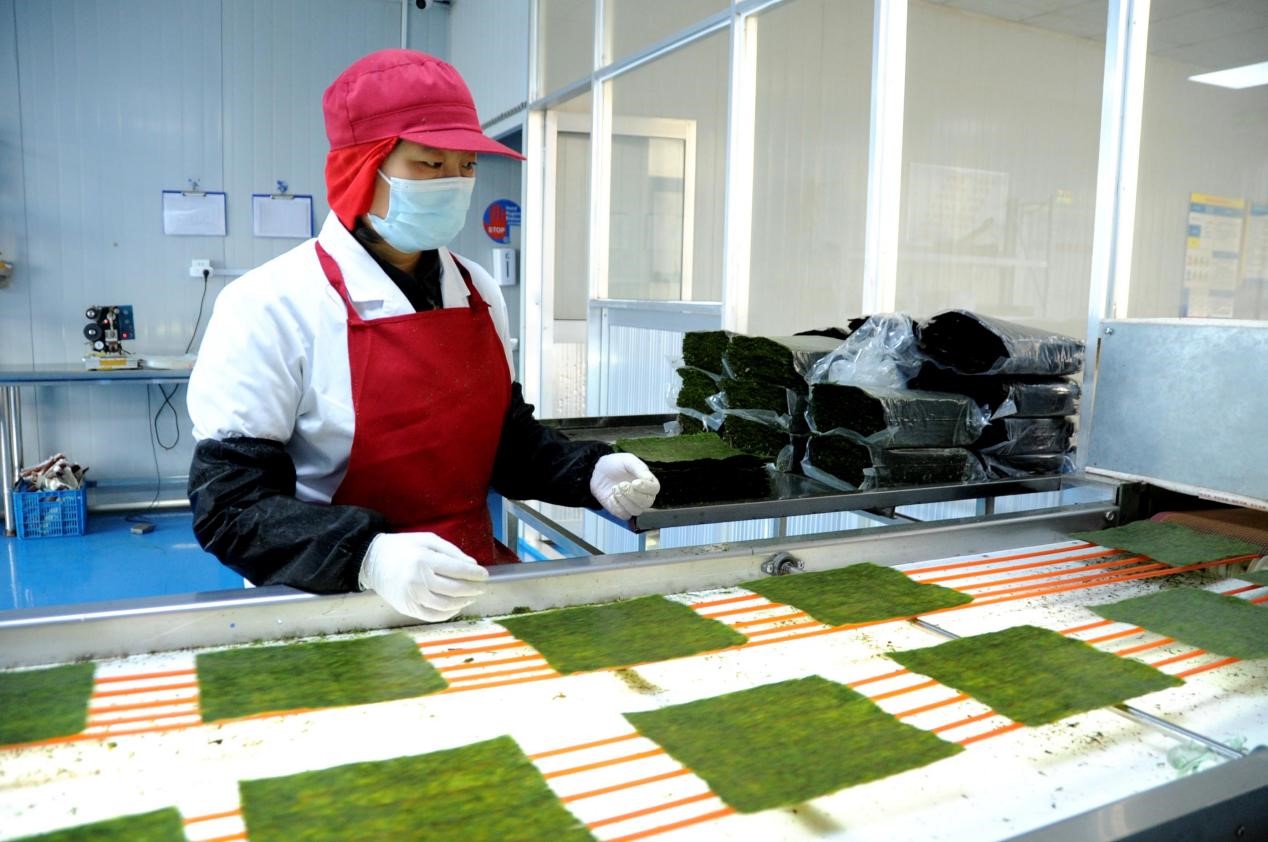 Nori sheets are produced at a nori industiral park in Lianyuangang Economic and Technological Development Area, east China's Jiangsu province, Feb. 21, 2022. (People's Daily Online/Wang Chun)