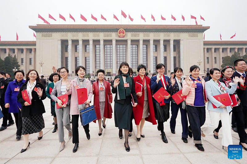 Deputies to the 13th National People's Congress (NPC) leave the Great Hall of the People after the closing meeting of the fifth session of the 13th NPC in Beijing, capital of China, March 11, 2022. (Xinhua/Gao Jie)