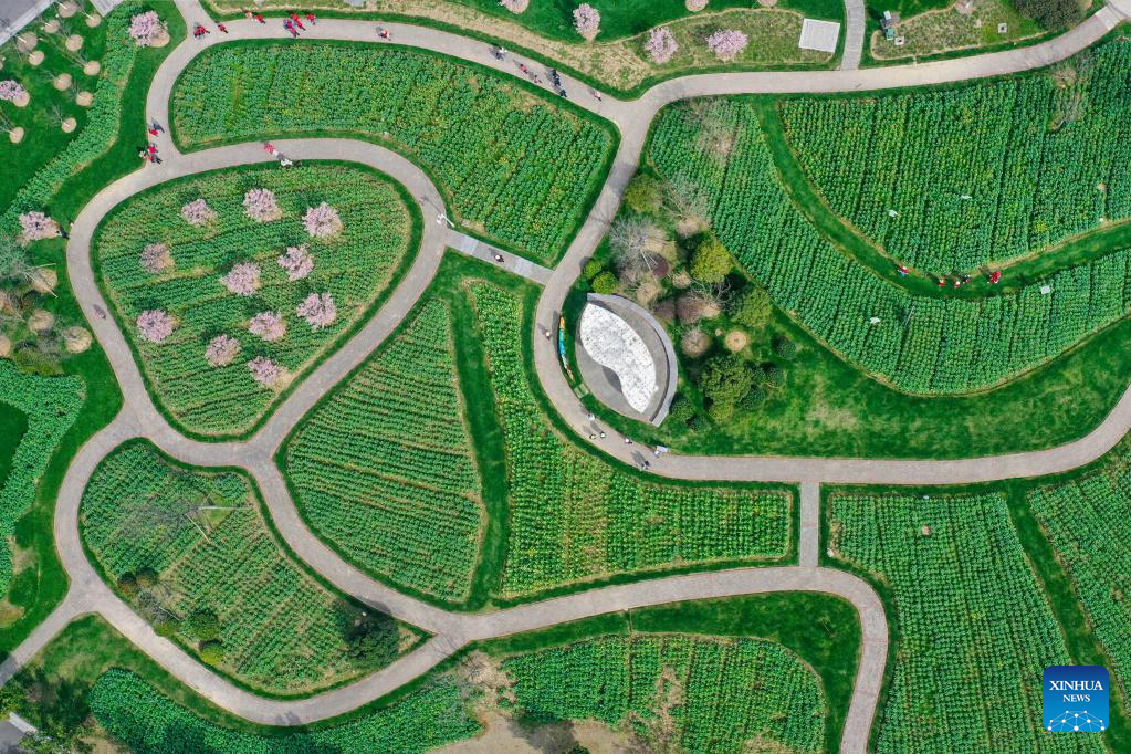 Aerial photo taken on March 10, 2022 shows a botanical garden in Ningbo, east China's Zhejiang Province. (Photo by Hu Xuejun/Xinhua)