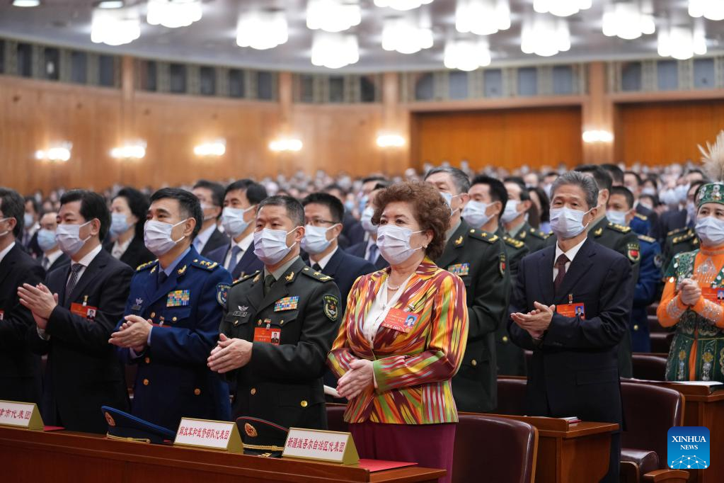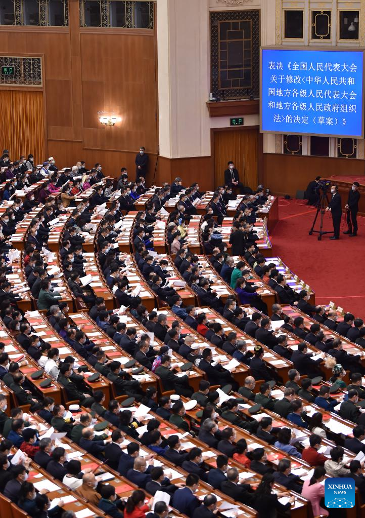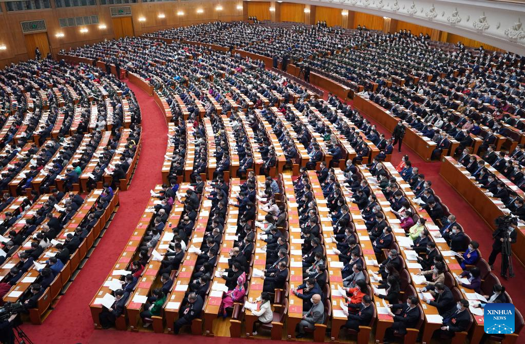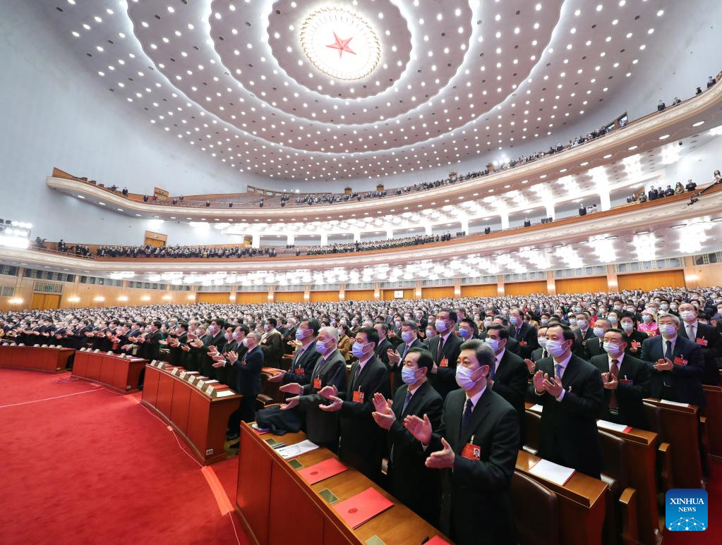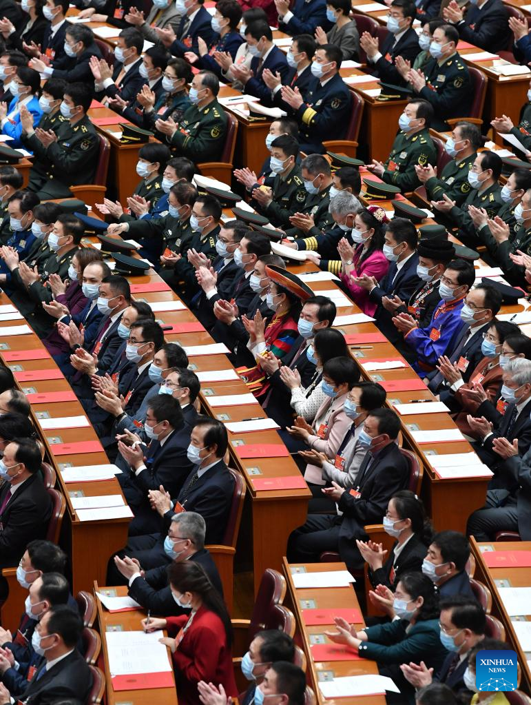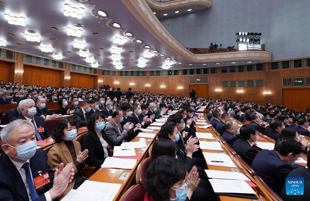 The closing meeting of the fifth session of the 13th National People's Congress (NPC) is held at the Great Hall of the People in Beijing, capital of China, March 11, 2022. Leaders of the Communist Party of China and the state Xi Jinping, Li Keqiang, Wang Yang, Wang Huning, Zhao Leji, Han Zheng and Wang Qishan attended the meeting, and Li Zhanshu presided over the closing meeting and delivered a speech. (Xinhua/Huang Jingwen)