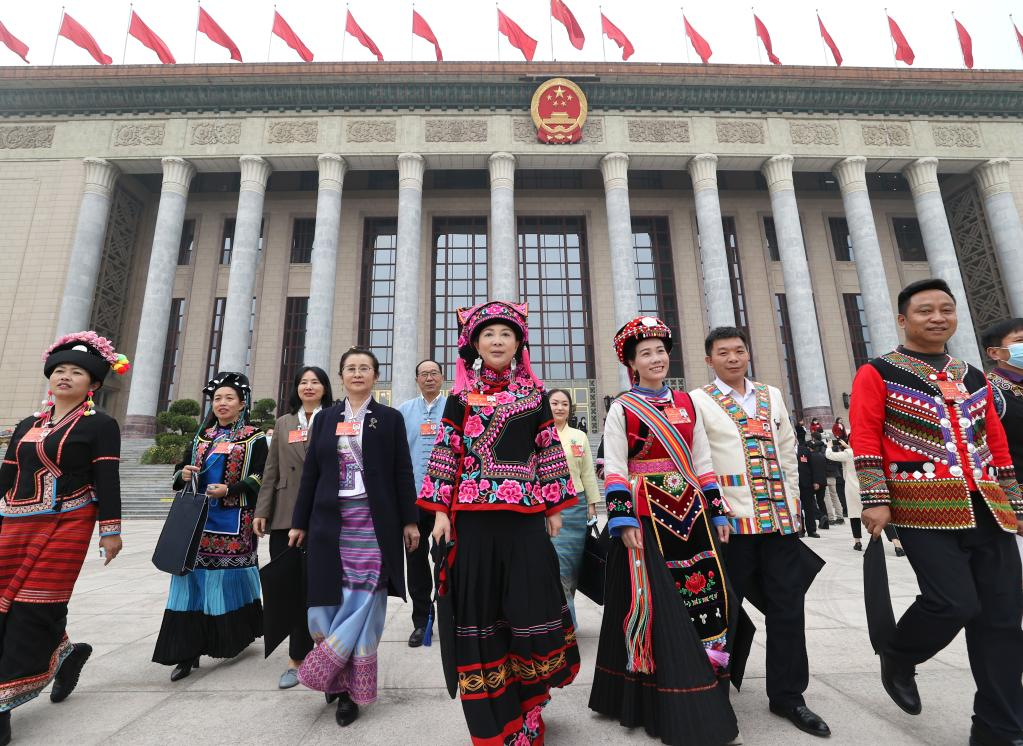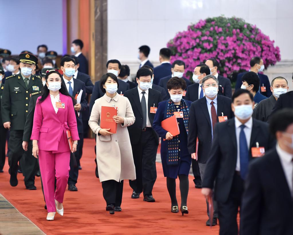 Deputies to the 13th National People's Congress (NPC) leave the Great Hall of the People after the closing meeting of the fifth session of the 13th NPC in Beijing, capital of China, March 11, 2022. (Xinhua/Jin Liangkuai)