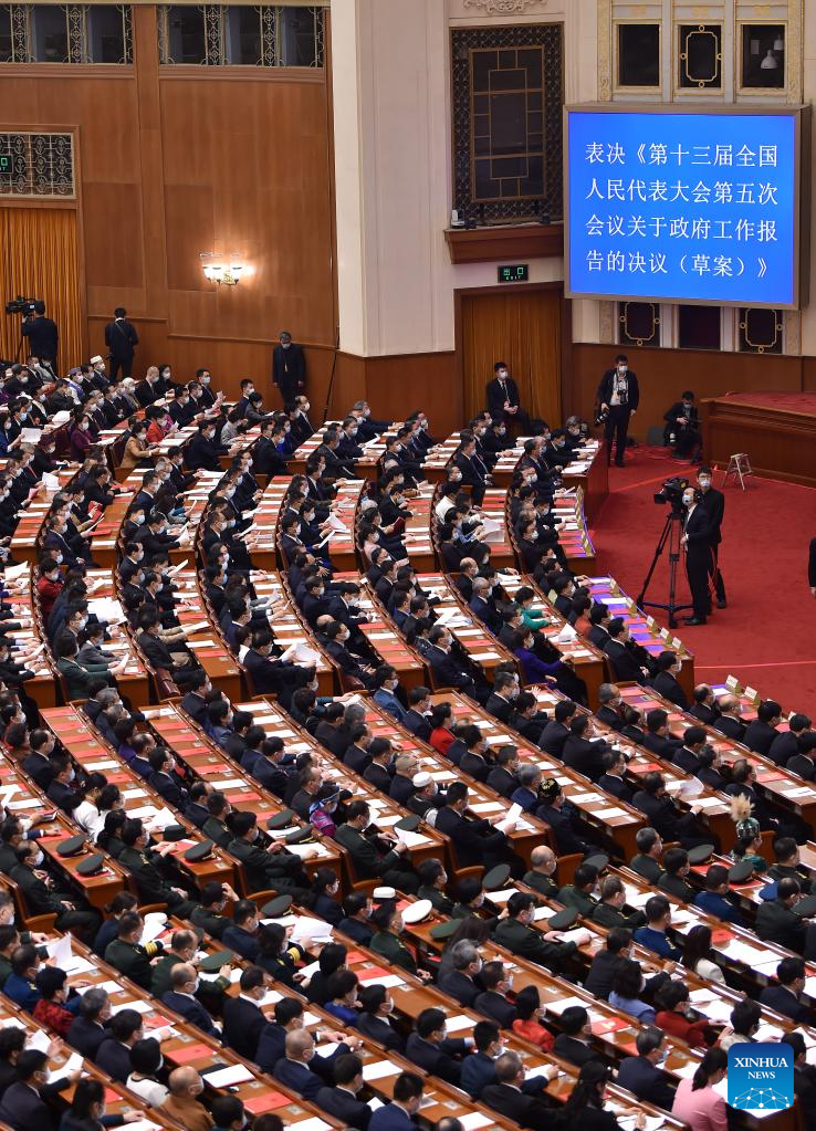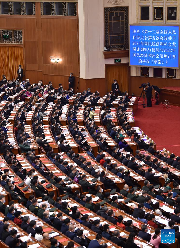 The closing meeting of the fifth session of the 13th National People's Congress (NPC) is held at the Great Hall of the People in Beijing, capital of China, March 11, 2022. (Xinhua/Liu Bin)