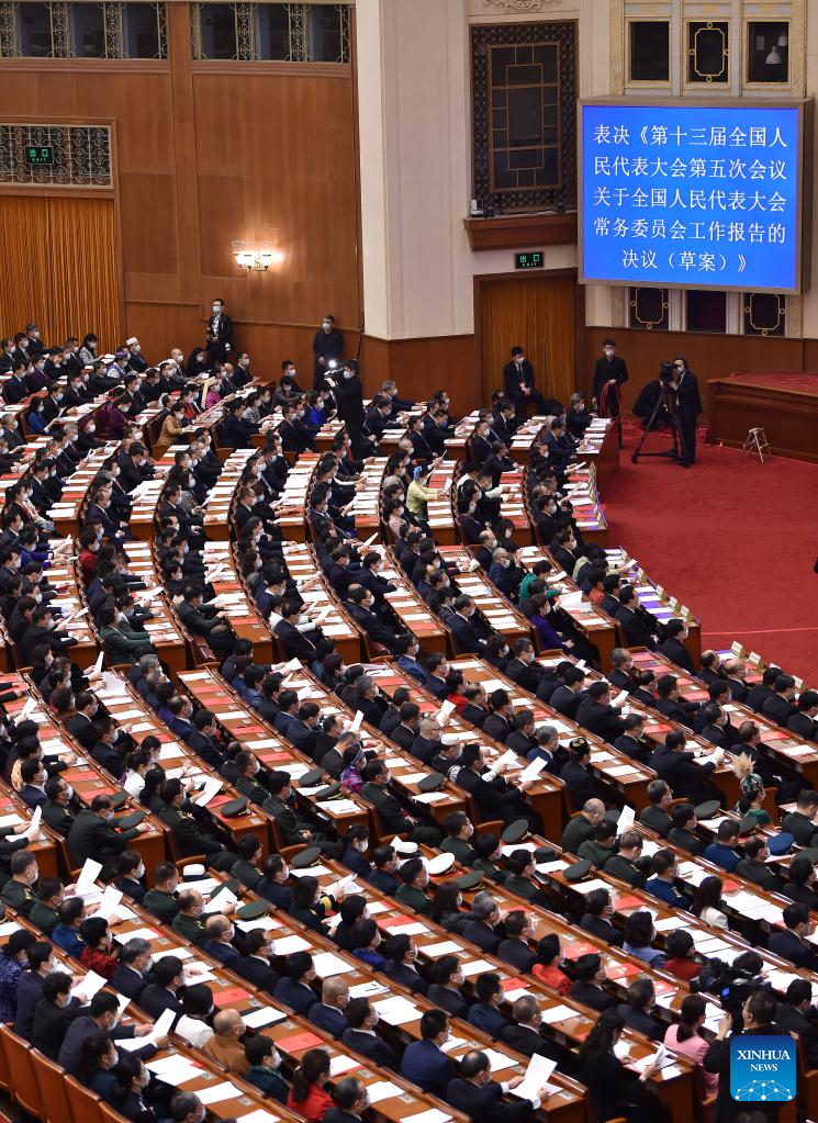 The closing meeting of the fifth session of the 13th National People's Congress (NPC) is held at the Great Hall of the People in Beijing, capital of China, March 11, 2022. (Xinhua/Li Xin)
