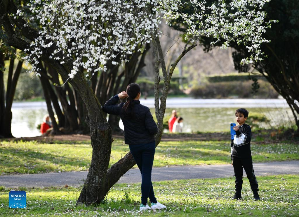 A man takes photos at Villa Borghese in Rome, Italy, on March 11, 2022. (Xinhua/Jin Mamengni)