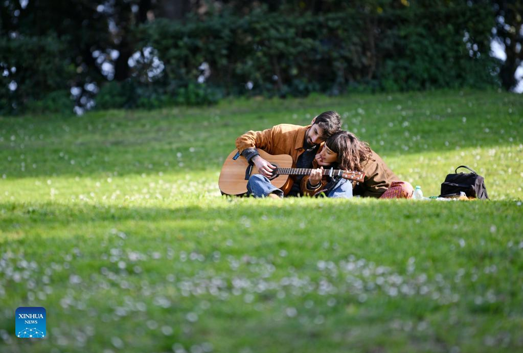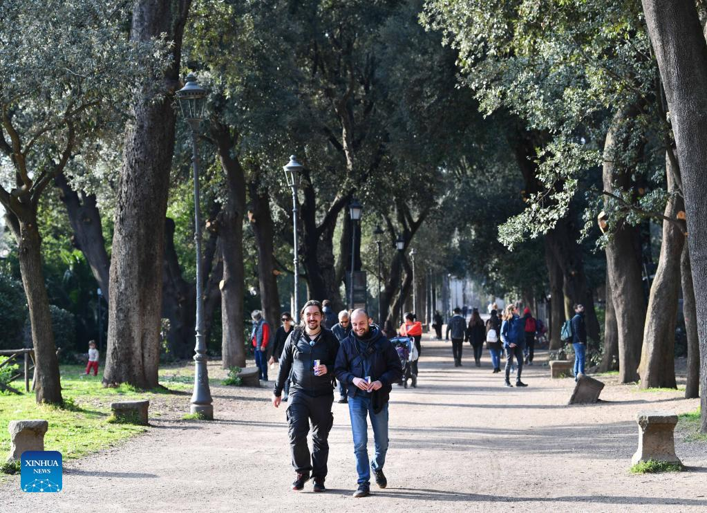 People walk at Villa Borghese in Rome, Italy, on March 11, 2022. (Xinhua/Jin Mamengni)