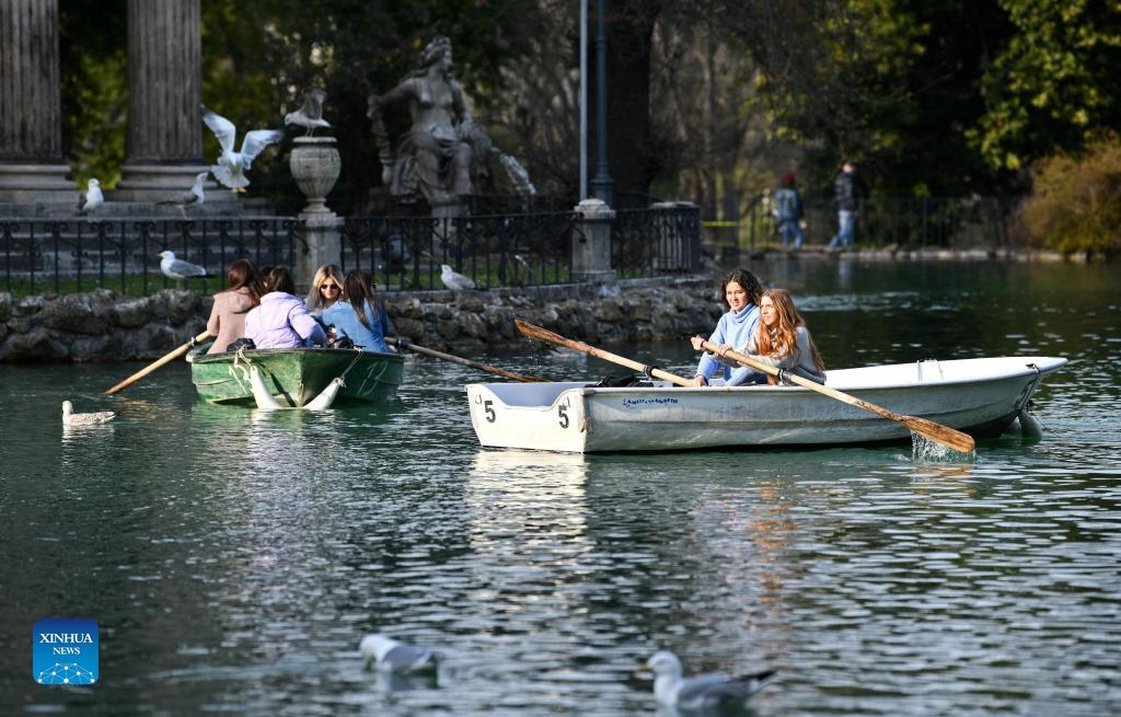 People row their boats at Villa Borghese in Rome, Italy, on March 11, 2022. (Xinhua/Jin Mamengni)