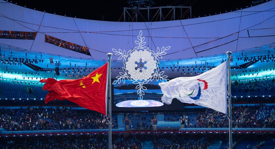 The Paralympic Winter Games Cauldron is lit during the opening ceremony of the Beijing 2022 Paralympic Winter Games at the National Stadium in Beijing, capital of China, March 4, 2022. (Xinhua/Wu Huiwo)