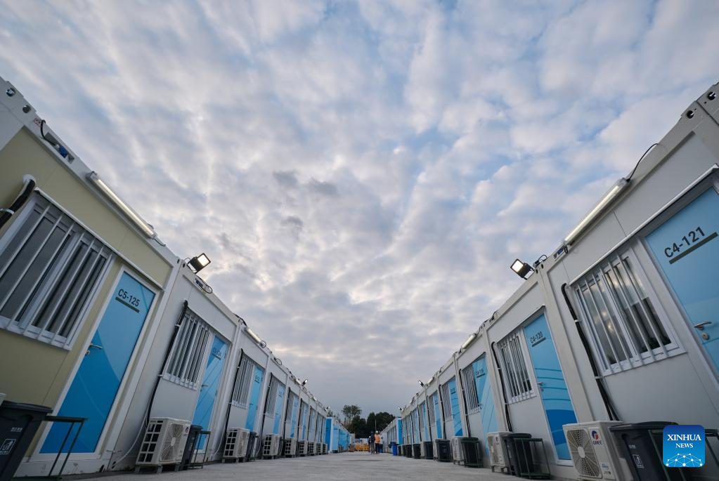 Photo taken on March 11, 2022 shows the newly-built community isolation facility located in Fanling, south China's Hong Kong. The fourth community isolation facility (CIF) in Hong Kong constructed with the support from the China mainland has been put into operation after it was handed over to the Hong Kong Special Administrative Region (HKSAR) government. The newly-built CIF provides over 350 rooms with more than 1,000 beds for emergency isolation. (Xinhua)