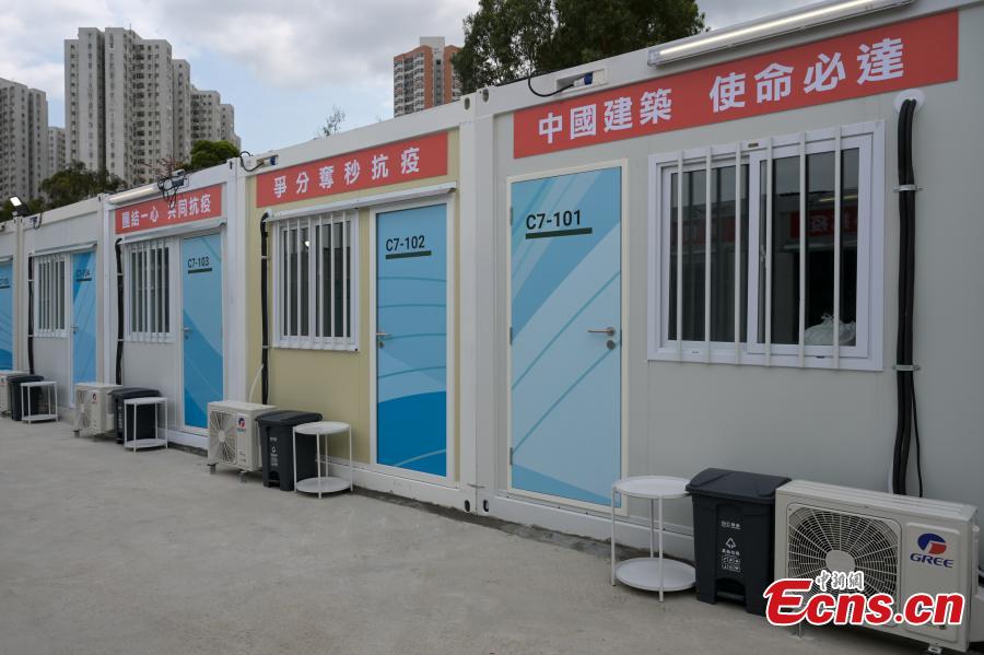 Photo taken on March 13, 2022 shows the newly-built community isolation facility located in Fanling, south China's Hong Kong Special Administrative Region. The fourth community isolation facility constructed with the support from the mainland has been put into operation on Sunday. The newly-built facility provides over 350 rooms with more than 1,000 beds for emergency isolation. (Photo: China News Service/Chen Yongnuo)