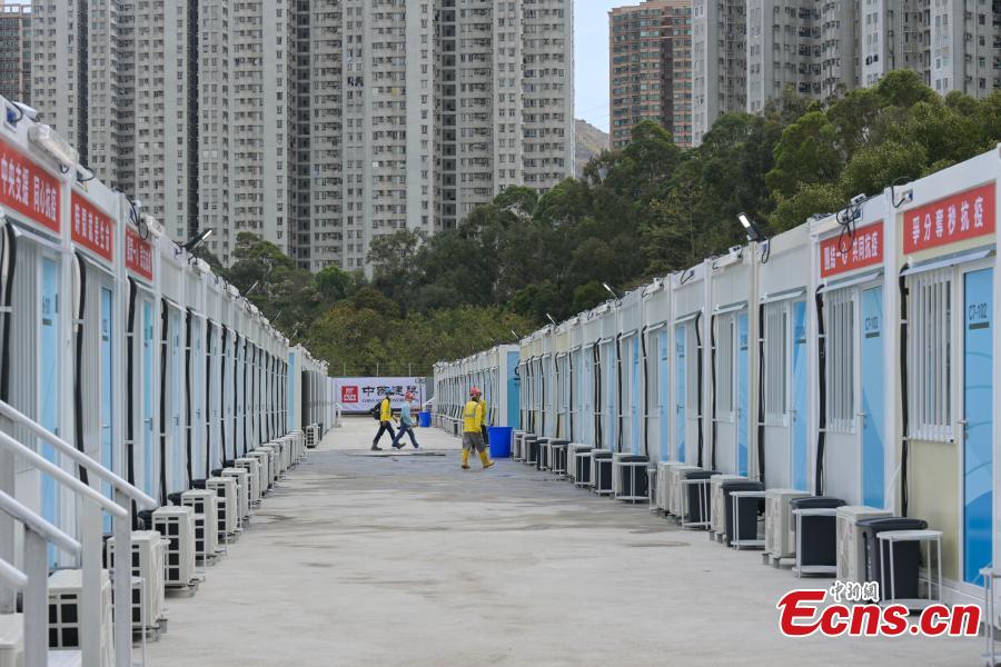 Photo taken on March 13, 2022 shows the newly-built community isolation facility located in Fanling, south China's Hong Kong Special Administrative Region. The fourth community isolation facility constructed with the support from the mainland has been put into operation on Sunday. The newly-built facility provides over 350 rooms with more than 1,000 beds for emergency isolation. (Photo: China News Service/Chen Yongnuo)