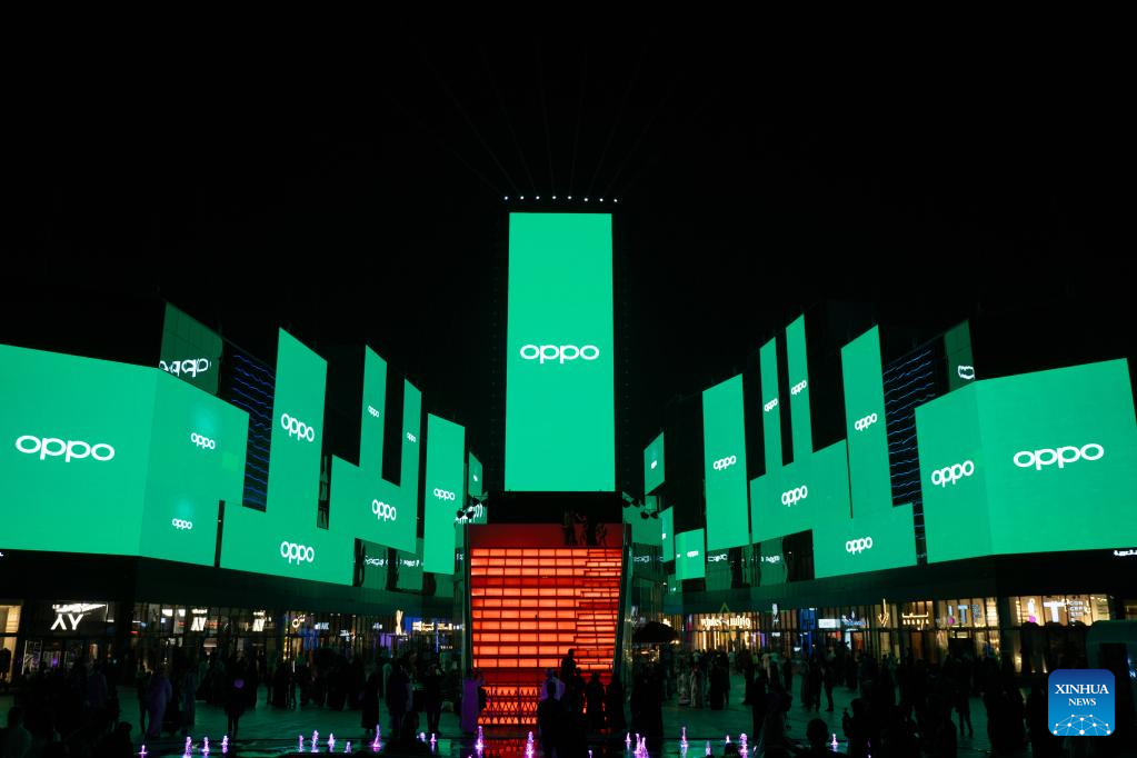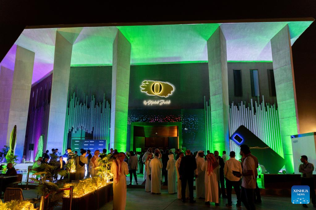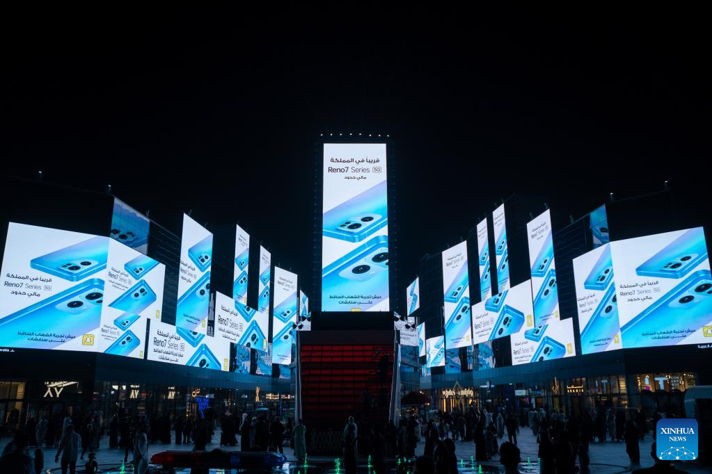 Photo taken on March 13, 2022 shows the launching event of the OPPO Reno7 series held in the Boulevard City of Riyadh Season, in Riyadh, Saudi Arabia. Chinese smartphone manufacturer OPPO has introduced its Reno7 series 5G phones in Saudi Arabia, marking the first launch of the brand's series in the Middle East market. (OPPO/Handout via Xinhua)