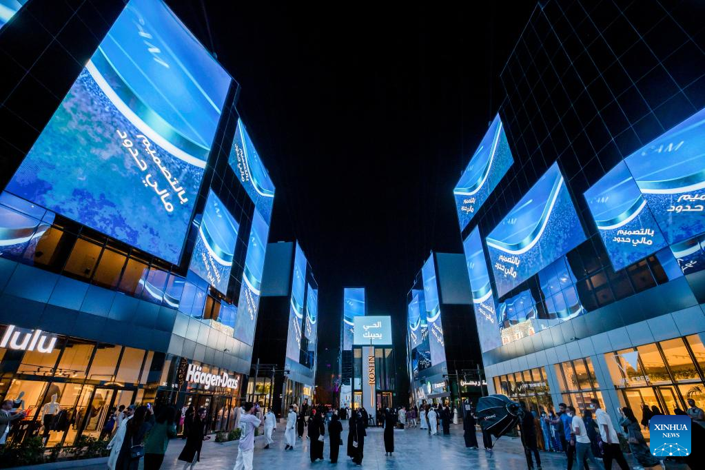 People attend the launching event of the OPPO Reno7 series held in the Boulevard City of Riyadh Season, in Riyadh, Saudi Arabia, March 13, 2022. Chinese smartphone manufacturer OPPO has introduced its Reno7 series 5G phones in Saudi Arabia, marking the first launch of the brand's series in the Middle East market. (Xinhua/Wang Haizhou)