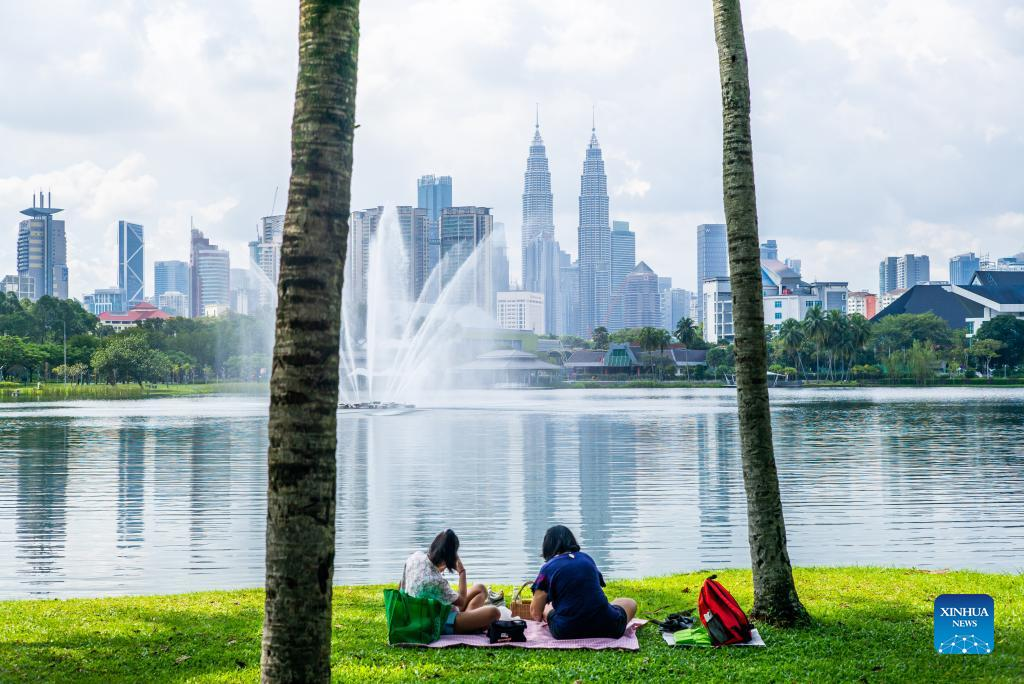 People have a picnic at a park in Kuala Lumpur, Malaysia, March 11, 2022. (Xinhua/Zhu Wei)