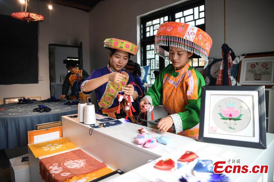 Batik art works are seen at Gulin County, Luzhou City, Sichuan Province. (Photo: China News Service/Liu Chuanfu)