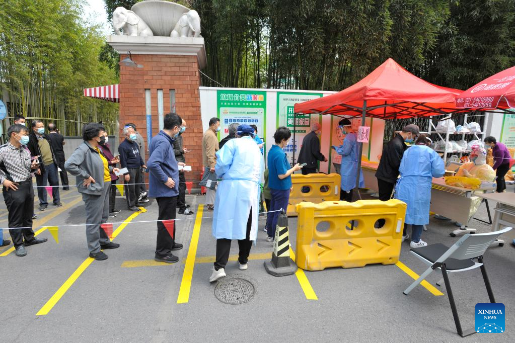Residents queue to receive nucleic acid tests at a community in east China's Shanghai, March 13, 2022. (Xinhua/Gao Feng)