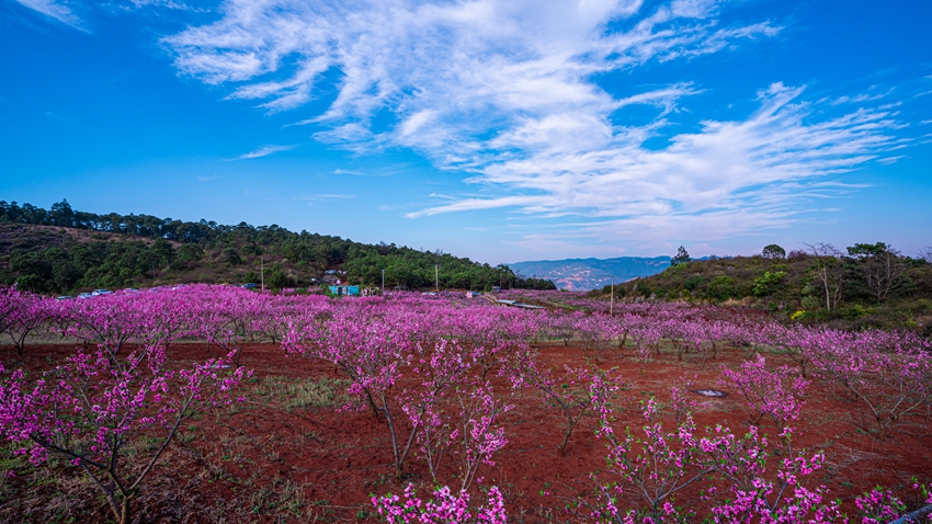 Recently, over 130,000 square meters of peach flowers have blossomed in the city of Yuxi, southwest China's Yunnan Province, forming a sea of vivid pink hues carpeting the entire locality. (Photo/Yang Honglong)