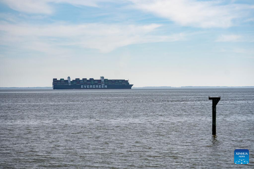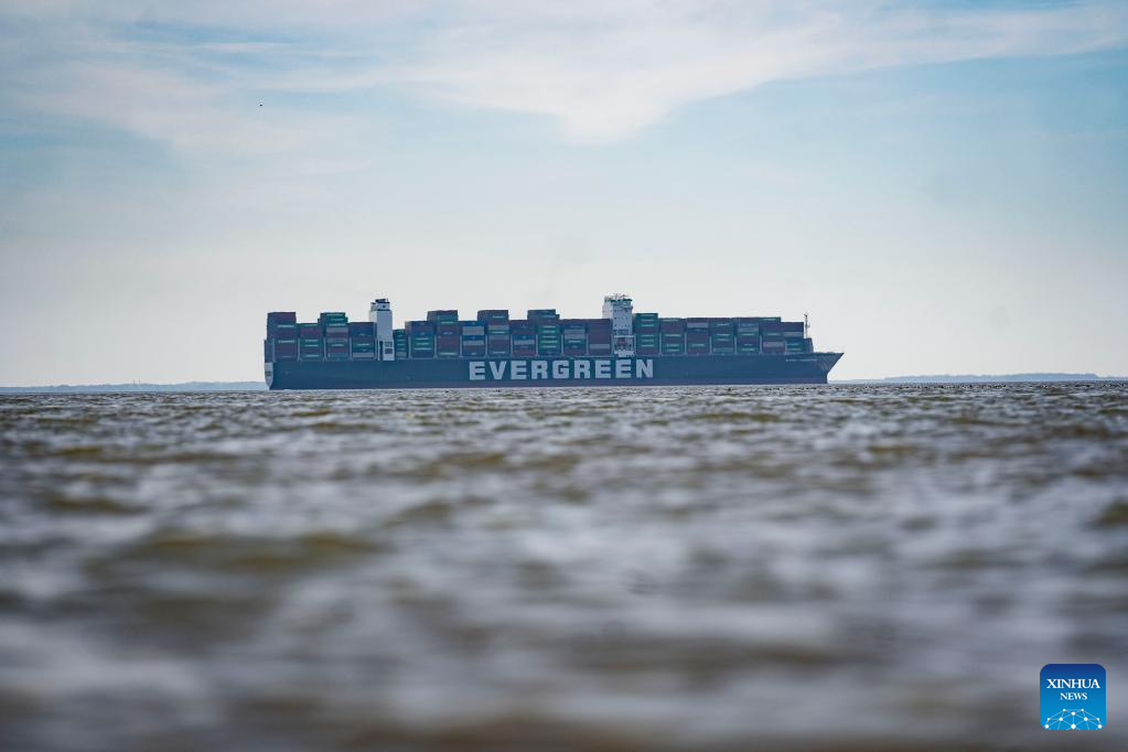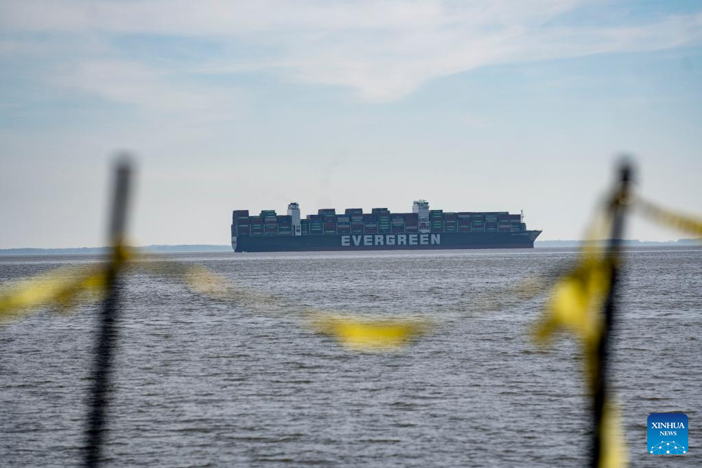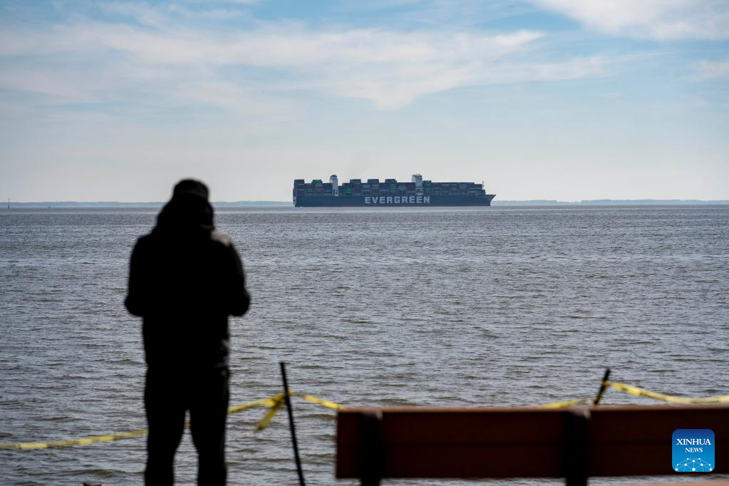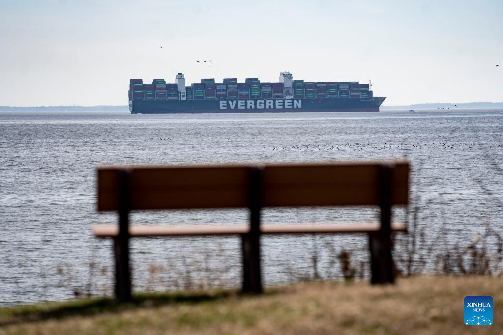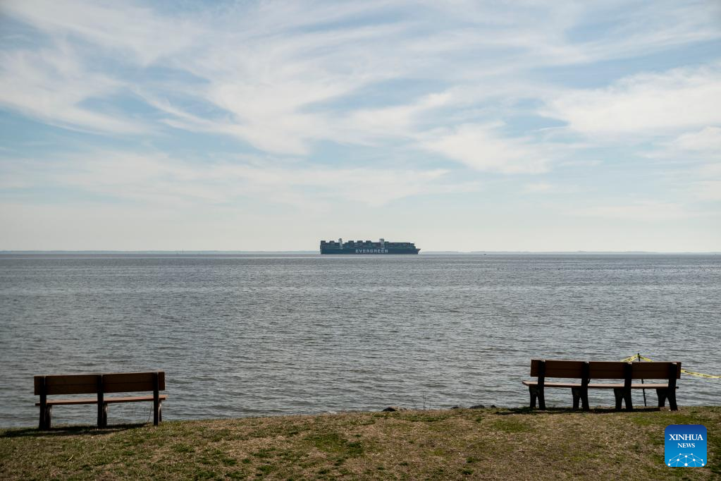 CHESAPEAKE BAY, the United States, March 15 (Xinhua) -- A giant container vessel has been stuck in the Chesapeake Bay, the largest inlet in the Atlantic Coastal Plain of the eastern United States.