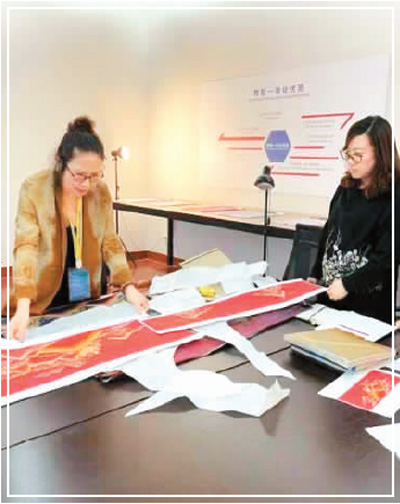 Photo shows You Jia and a colleague working on details of a clothing design. (Photo/People’s Daily Overseas Edition)