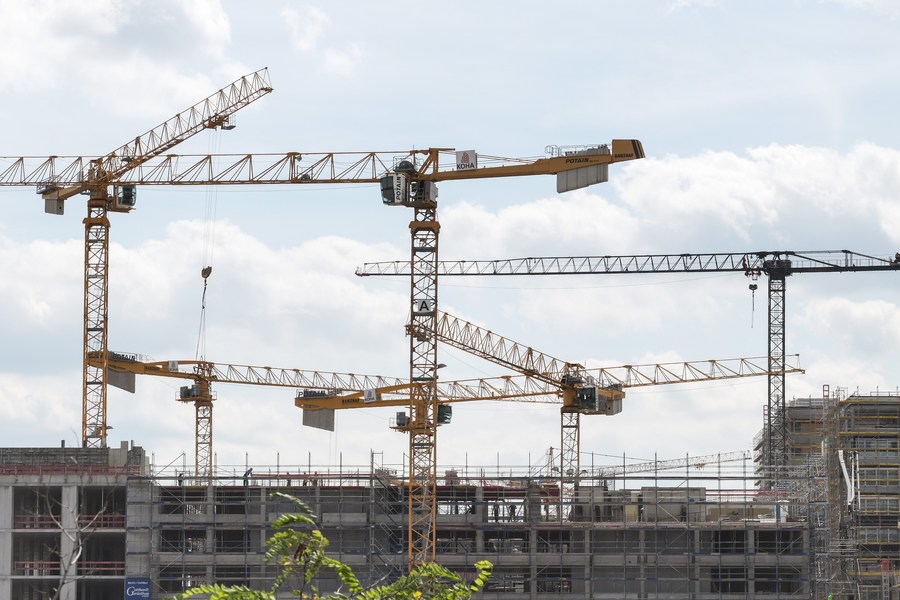 A construction site is seen in Berlin, capital of Germany, on July 30, 2021. (Photo by Stefan Zeitz/Xinhua)