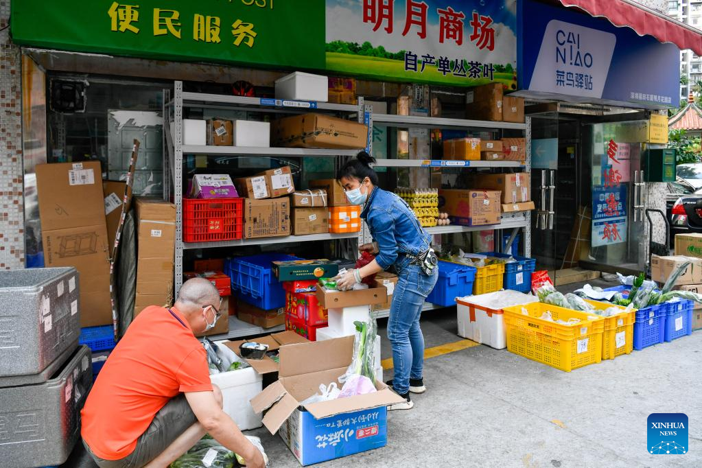 Staff members pack vegetables to be delivered to households in Futian District of Shenzhen, south China's Guangdong Province, March 17, 2022. Shenzhen, China's major tech hub bordering the country's Hong Kong Special Administrative Region, asked its 17-million-plus residents on Monday to work from home if they can, while the city is carrying out three rounds of mass testing.
