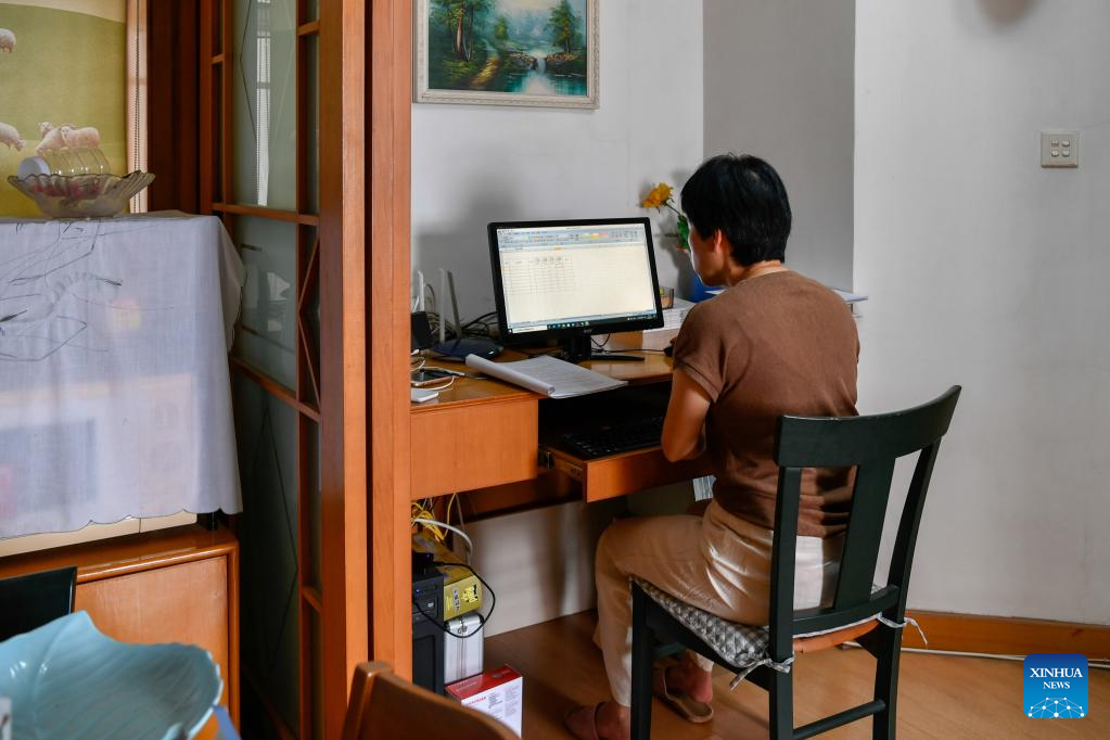 A resident works from home in Futian District of Shenzhen, south China's Guangdong Province, March 17, 2022. Shenzhen, China's major tech hub bordering the country's Hong Kong Special Administrative Region, asked its 17-million-plus residents on Monday to work from home if they can, while the city is carrying out three rounds of mass testing.