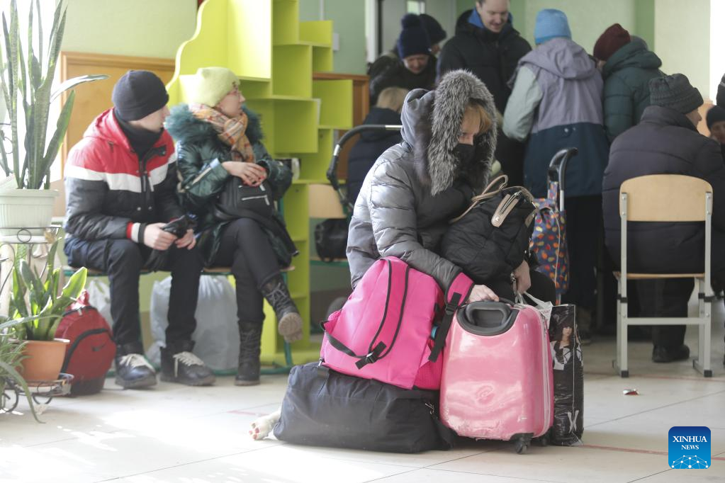 People rest at a temporary settlement site near Mariupol, Ukraine, March 17, 2022. (Photo by Victor/Xinhua)