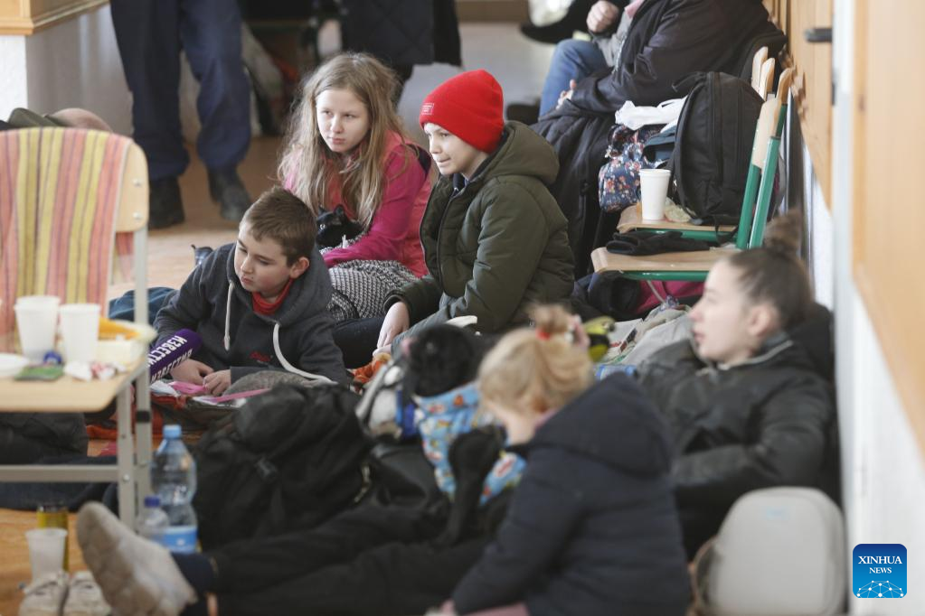 People rest at a temporary settlement site near Mariupol, Ukraine, March 17, 2022. (Photo by Victor/Xinhua)